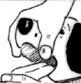 mouth open. Using the other hand, pull the tongue