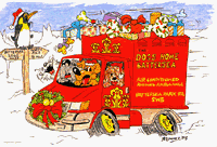 all guests at the home are raring to go for Christmas. We have put together a collection of our favouriteChristmas cards in the stationery section and are selling them from our shop along with all the other ideas for Christmas presents; books, videos, clothes, souvenirs, accessories, toys and stationery. Battersea Dogs Home thought you would like to send a present and card to old and new friends and to your friends that you saw at the Reunion. At Battersea Dogs Home we have short stay and long stay guests. They asked me to remind you that should you bump into any of their furry friends looking lost over Christmas or in need of medical attention to contact them straightaway. Important information on the website details exactly what to do. Remember, that dogs and cats need and enjoy being looked after and fed too, particularly during Christmas when there may be some extra goodies in store! Do not forget us over the Christmas period. Finally, furry friends at Battersea Dogs Home asked me to wish you a very Merry Christmas and Happy New Year. |